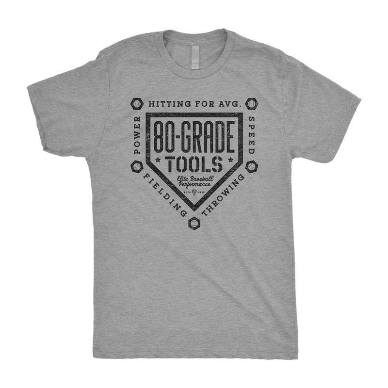 In baseball, the tools for success are measured on a 20-80 scale.Premium athletic fit t-shirtRing-spun cotton / polyester blendScreen-printed in the USAAvailable in Heather Gray