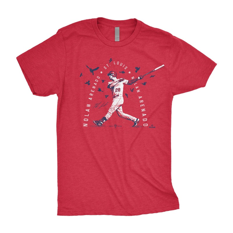 Nolan Arenado has landed in St. Louis, andhe'sready to let it fly!Premium men's athletic fit t-shirtRing-spun cotton / polyester blendScreen-printed in the USAAvailable in Heather RedThis is an officially licensed product of the Major League Baseball Playe