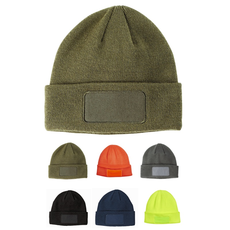 Big Accessories BA527 Patch Beanie, Knit Cap100% acrylic thin rib knitDouble layer3 3/4"W x 1 7/8"H cotton twill patch on cuff for embellishment8" length with 3" fold-up cuffView All Big Accessories Brand