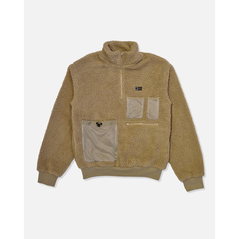 Salty Crew Half Zip PulloverHeavyweight Sherpa FleeceUtility mesh pocketing with cord closuresZippered hand pockets provide secure storagestretch binding at the bottom hem and cuffs 100% polyesterSalty Crew woven label at interior neck